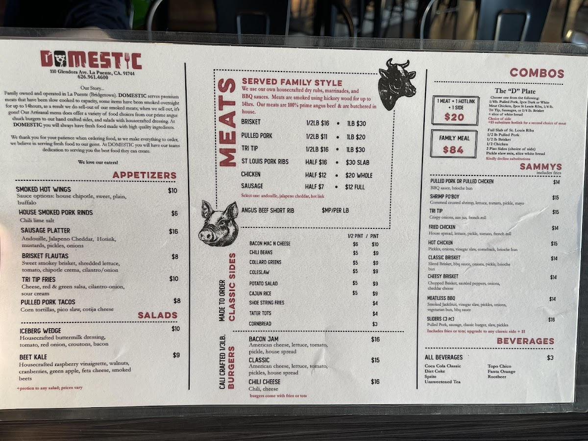 In the world of barbecue, Domestic stands out not just for its delicious food but also for its community vibe. The energetic reviews from patrons emphasize just how special this place is. Customers appreciate how supportive it is of local business, further enhancing the charm that surrounds this smokehouse. Don’t miss your chance to savor the best BBQ in La Puente—the perfect spot for anyone craving that authentic smoky flavor!